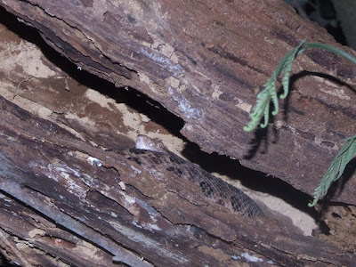 今天跟同學去爬山,沒想到他還在同一個樹洞裡面等待,所以就遠遠的拍了一張相片作為記錄。剩下三張是今天找到的台北樹蛙,這三隻都是在竹林區發現的。