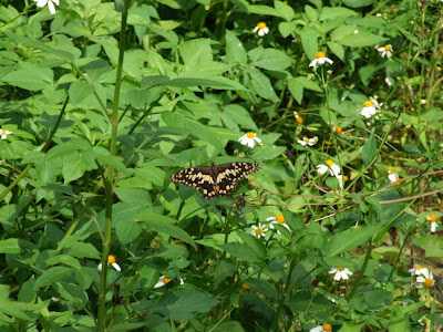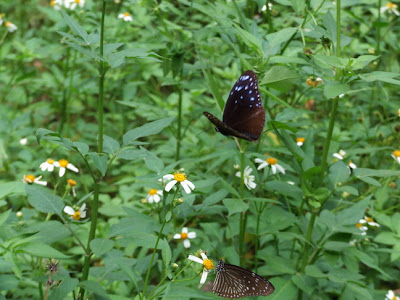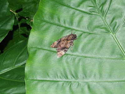 最後是在自然演替區前方的姑婆芋上,拍到鬼臉天蛾,這是第一次登錄喔!之前只有拍過毛毛蟲而已。