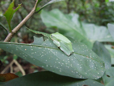自然演替區後方,福州山公園步道入口左方的水同木上,台北樹蛙一隻,她似乎就住在這棵樹上,我幾乎每天都可以看到她;