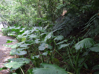 因為公園入口已經被整理過了,所以就看不出來這次颱風到底有沒有淹水。但是,進入生態水道之後,迎面而來的卻是一大片被砍頭的姑婆芋...