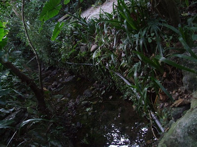 這原本是溼地後方的一條石階,當初為了維護溼地的不受干擾,所以將這個區域封閉,任由植物淹沒了這個石階。但是現在它又非常整齊清潔的出現了!!不知道這是計畫有變更,還是有人多此一舉了呢?