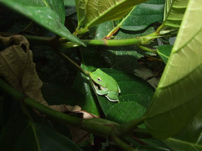 進入溼地前,拍到了這個樹蛙,因為剛剛下雨的關係,他似乎被吵醒了;