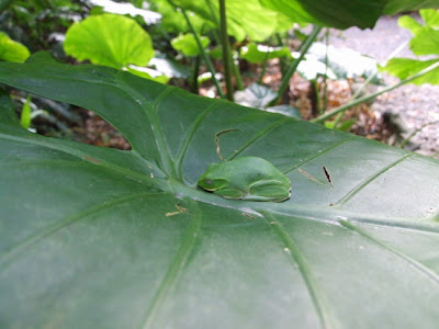 這兩天只拍到一隻台北樹蛙....明天要幫幾個朋友導覽,希望沒有問題才好.....最近公園裡的姑婆芋持續被大量割除,昨天看到之前拍到過那位賣魚的大嬸,抱著一大把姑婆芋上山去;今天遇到爬山的朋友提起這件事情,她說她親眼看到那位大嬸在上山前的那個小空地、椅子的後方砍了一堆姑婆芋,然後才上山....真的是屢勸不聽!!