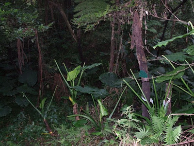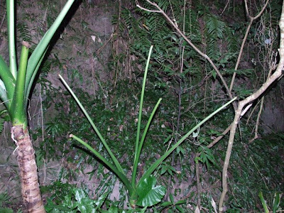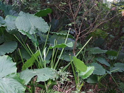 這是在竹林區跟次生林區中間的石梯旁,被砍頭的一片姑婆芋;