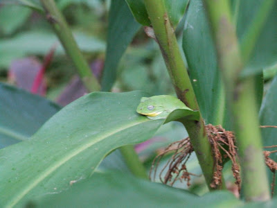 今天運氣還不錯,在溼地看到了一隻快睡醒的小樹蛙;