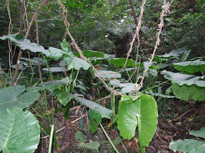 今天觀察到的姑婆芋被砍區域,是在雕像區靠近排水溝的邊界上,也是一次砍了十來片吧;